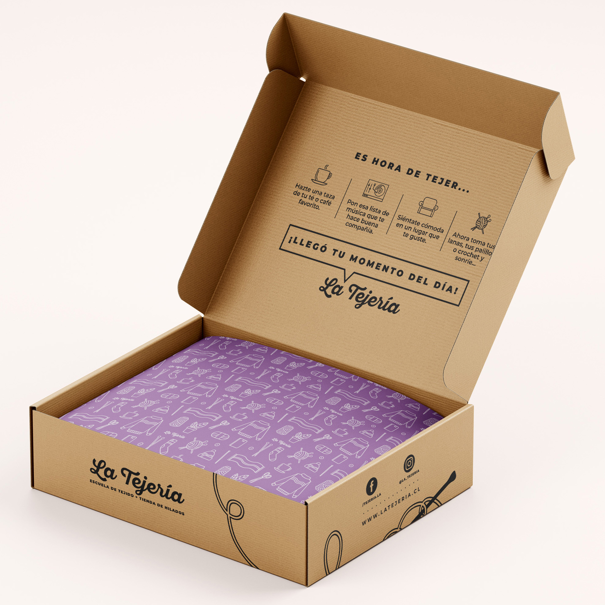 Branding para packaging de La Tejería, Escuela de tejido y tienda de hilados.