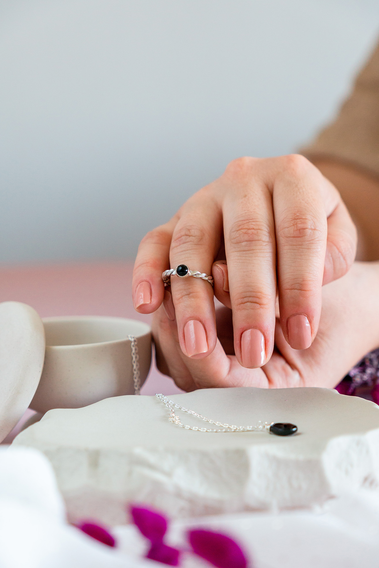 Fotografías de joyas para Constanza Oneto. Cada pieza, elaborada a mano con plata 950, refleja la inspiración en la arquitectura, su profesión de origen. Desde la geometría hasta elegante simplicidad, cada diseño rescata conceptos arquitectónicos en joyas modernas y sofisticadas.
