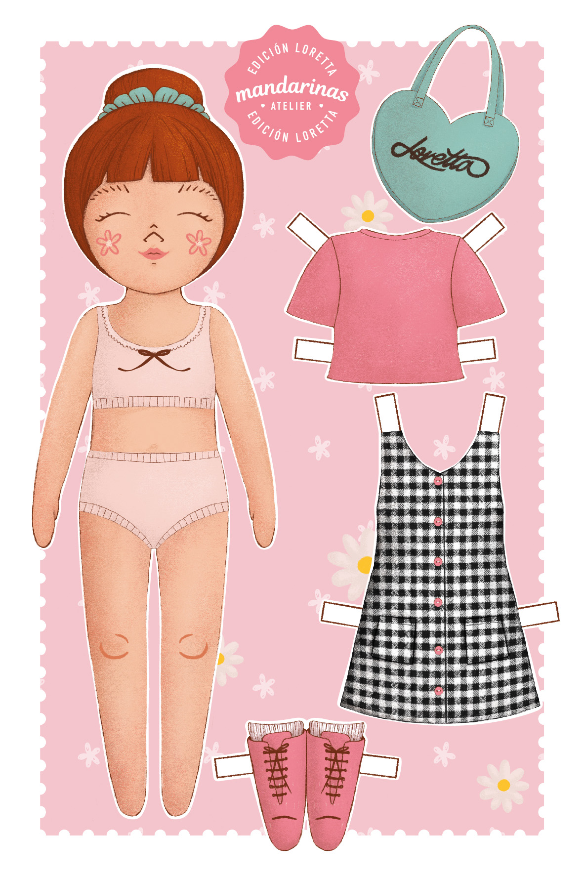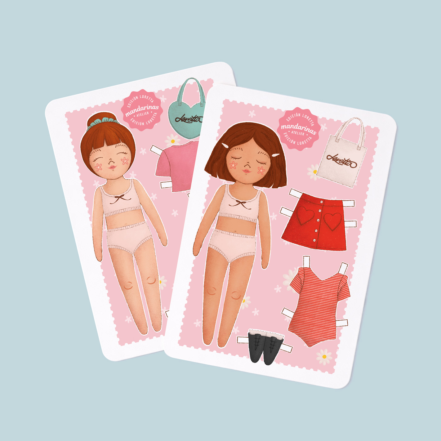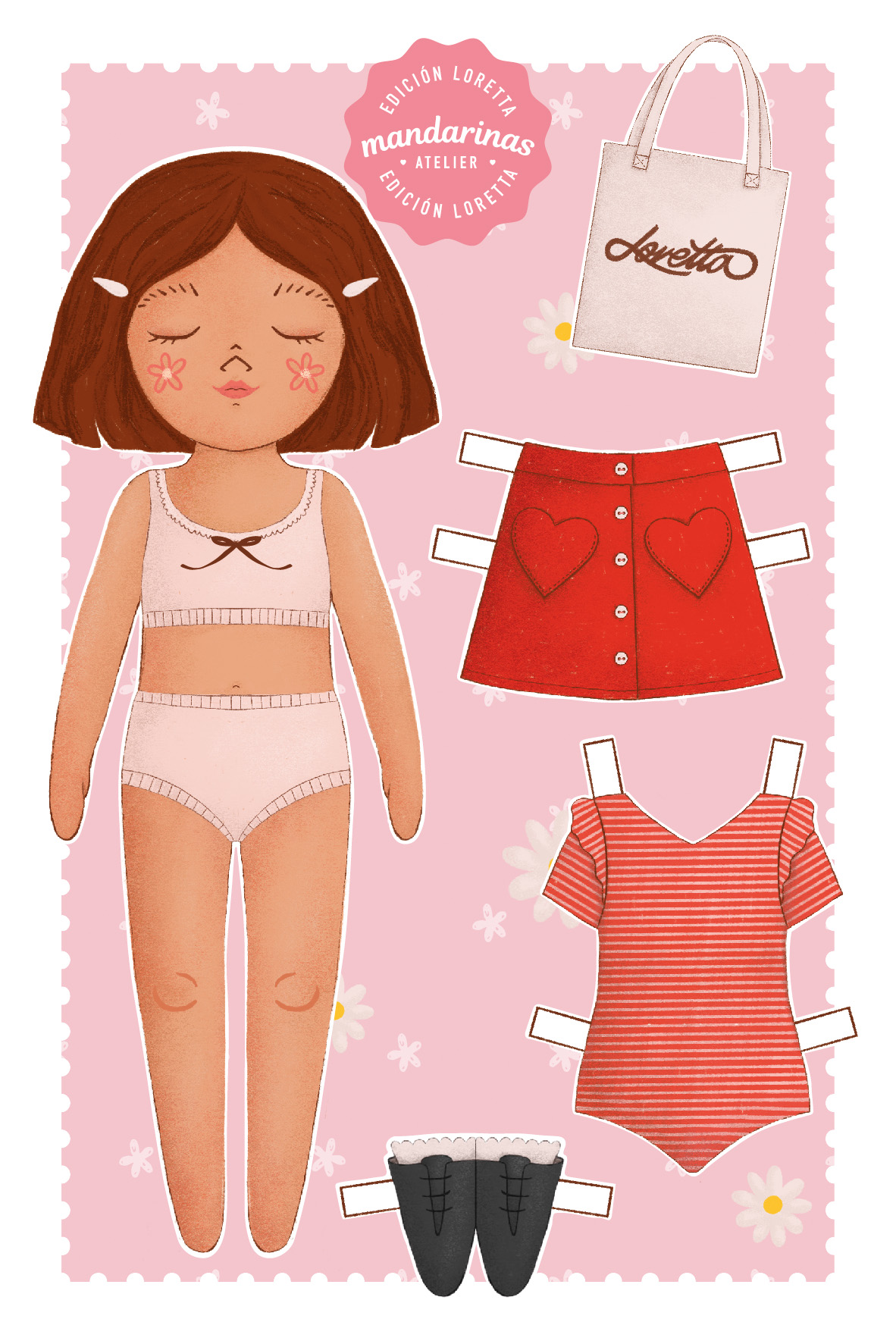 Loretta es una marca chilena de vestuario femenino creada por Maria Paz Beltrami, estética delicada, nostálgica y atemporal, de colores suaves y referencias vintage. Para la marca ilustré una serie de muñecas de papel vestidas con prendas reales de sus colecciones.