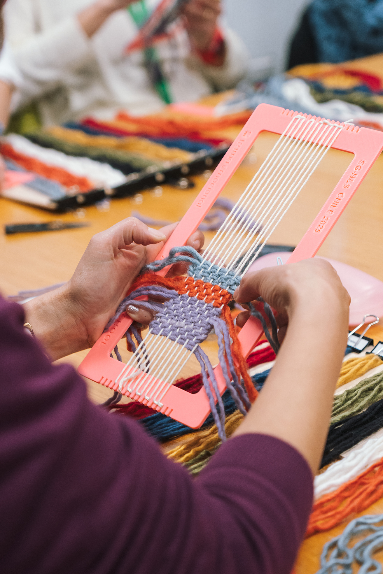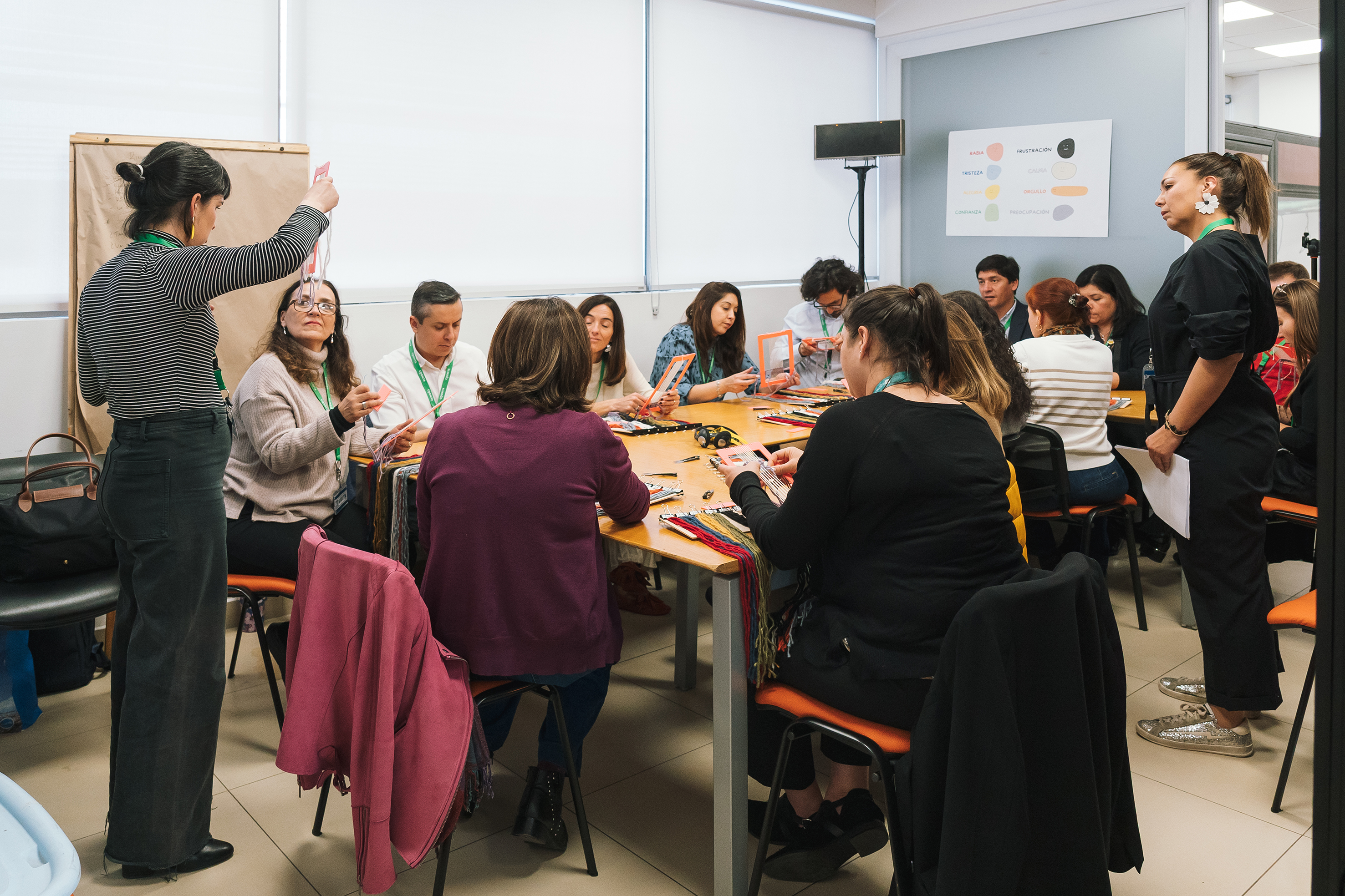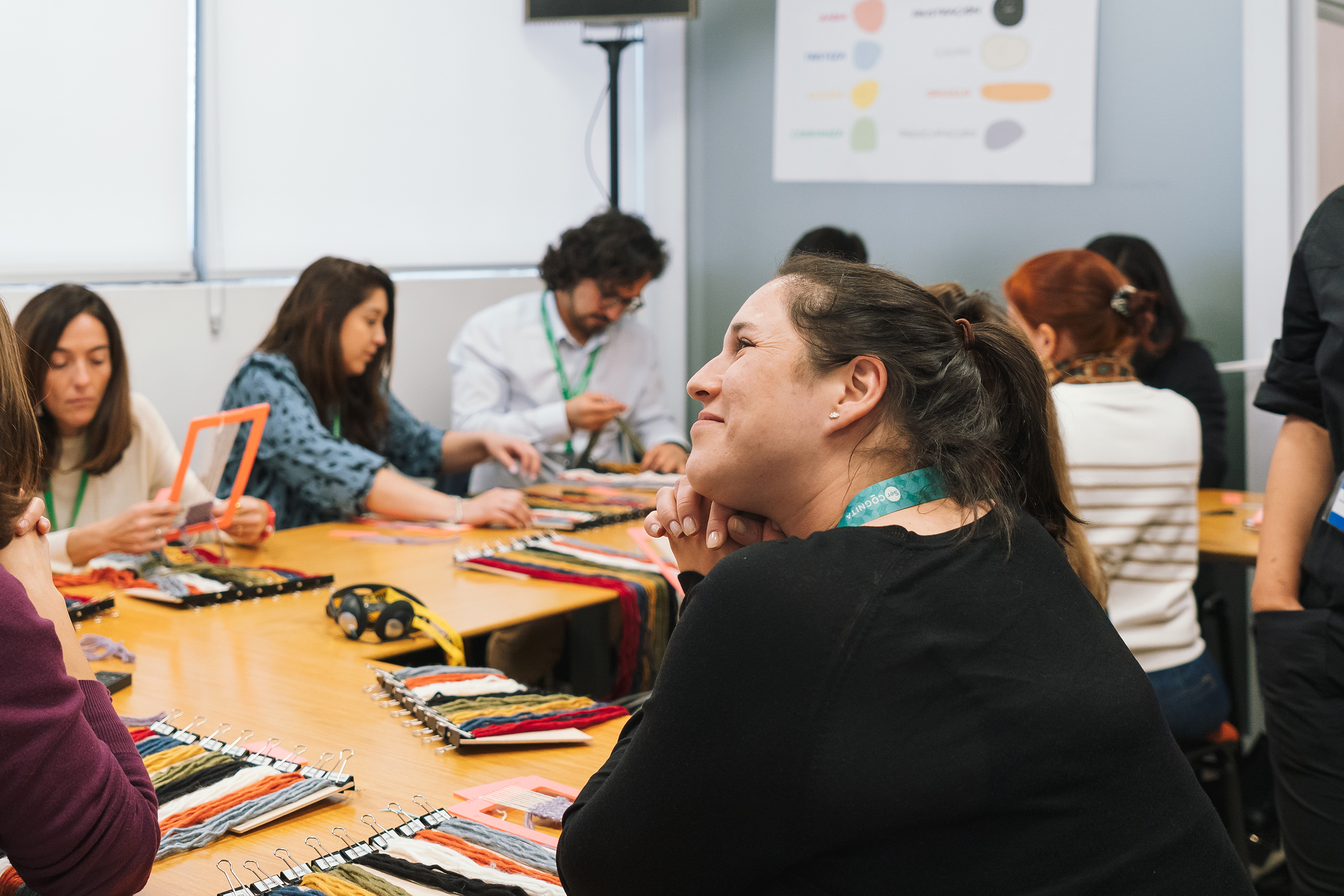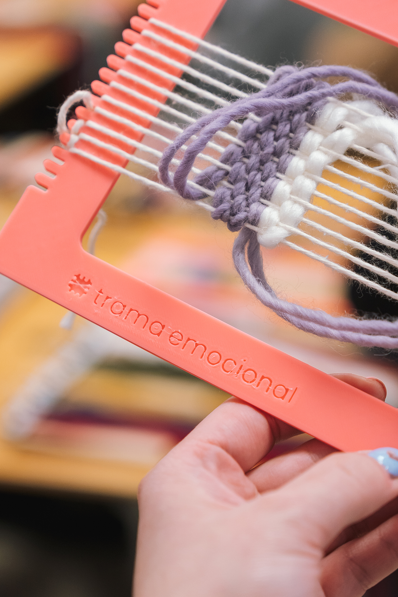 Registro fotográfico de talleres experienciales para equipos de trabajo del proyecto Trama Emocional creados por Javiera Hernández -periodista- y Paulina Araya -psicóloga-, ambas tejedoras.