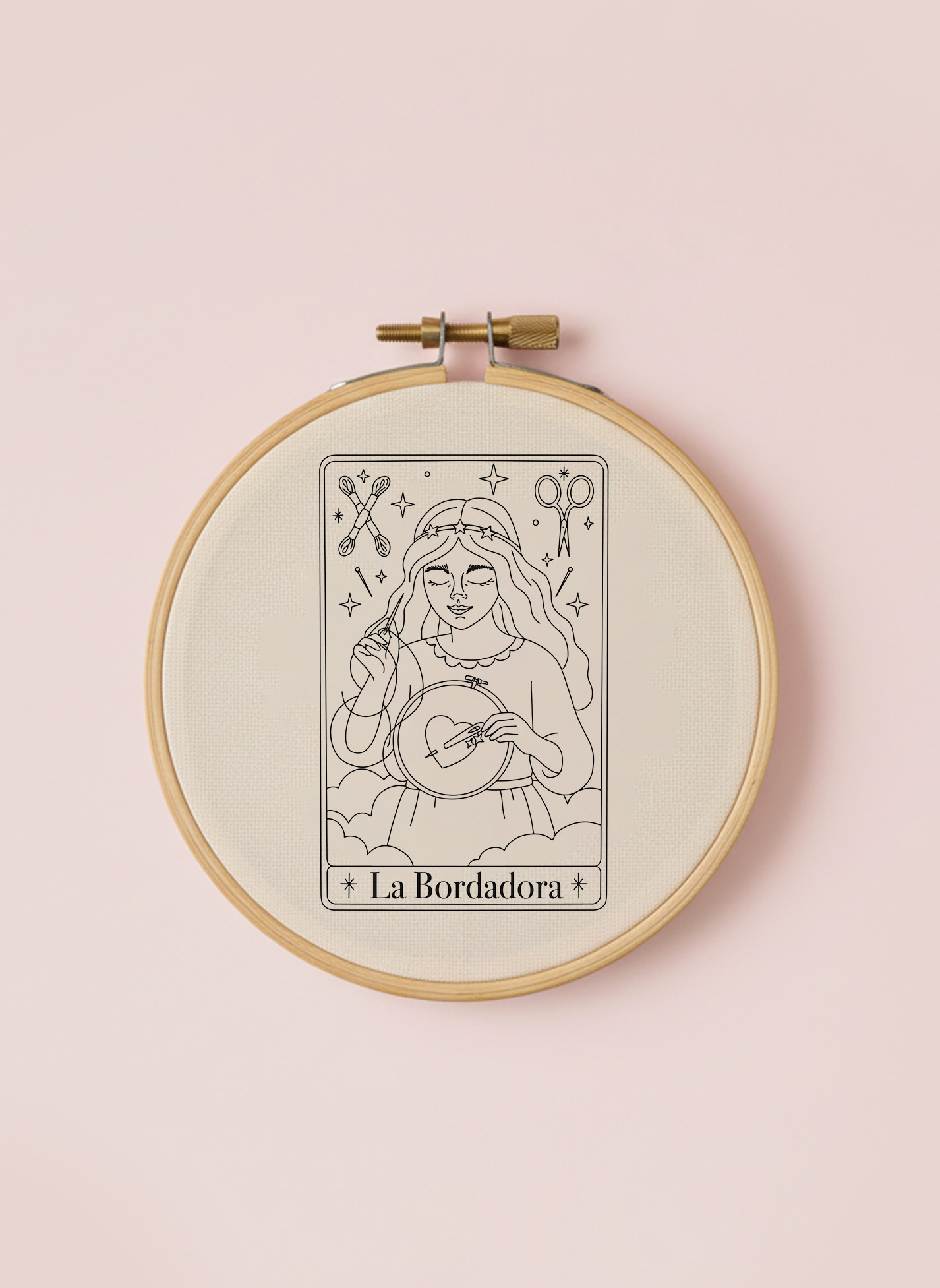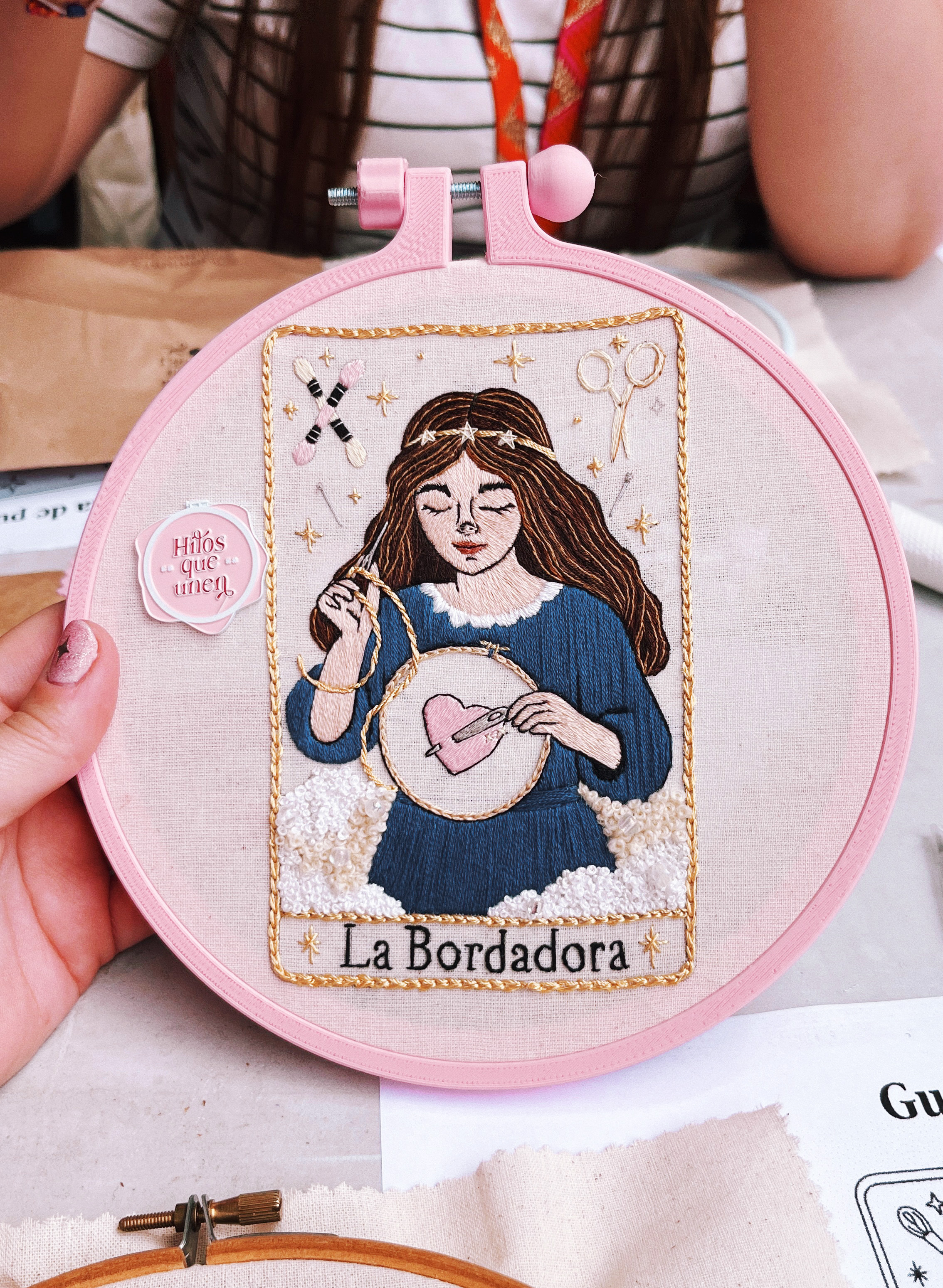El diseño «La Bordadora», concebido como una pieza central del evento, presenta una ilustración simbólica inspirada en una carta de tarot y el oficio del bordado, resaltando el acto manual, la calma y el valor de crear con las manos, en sintonía con la identidad de Hilos que Unen.