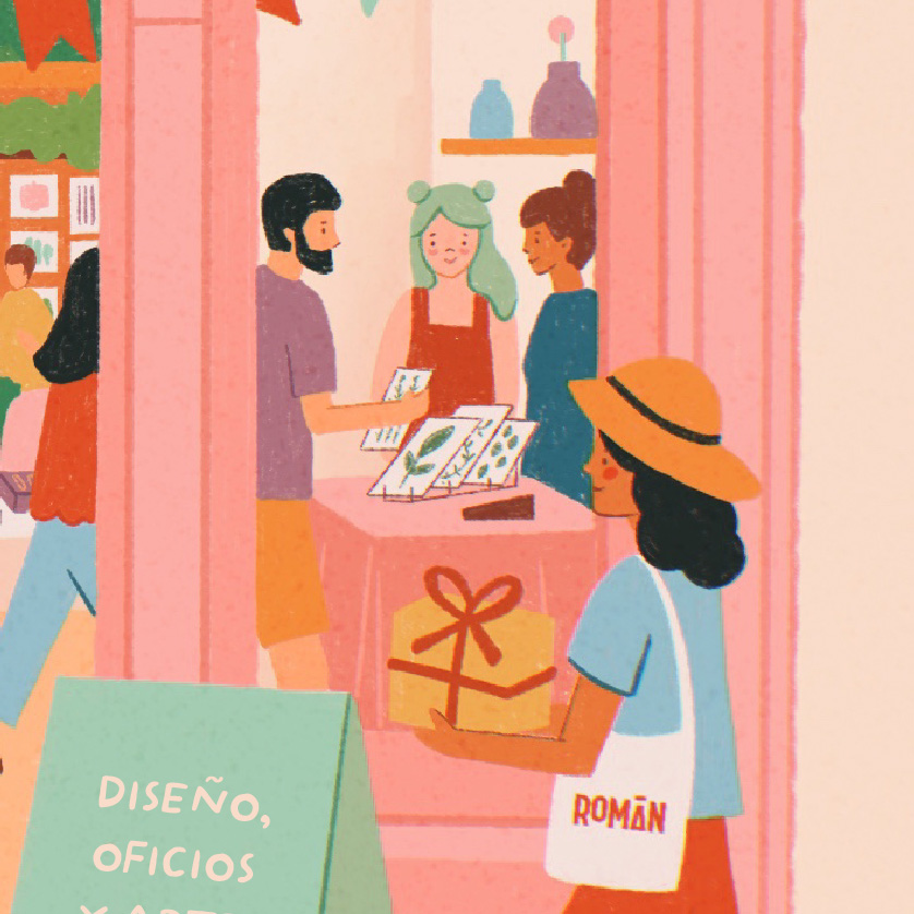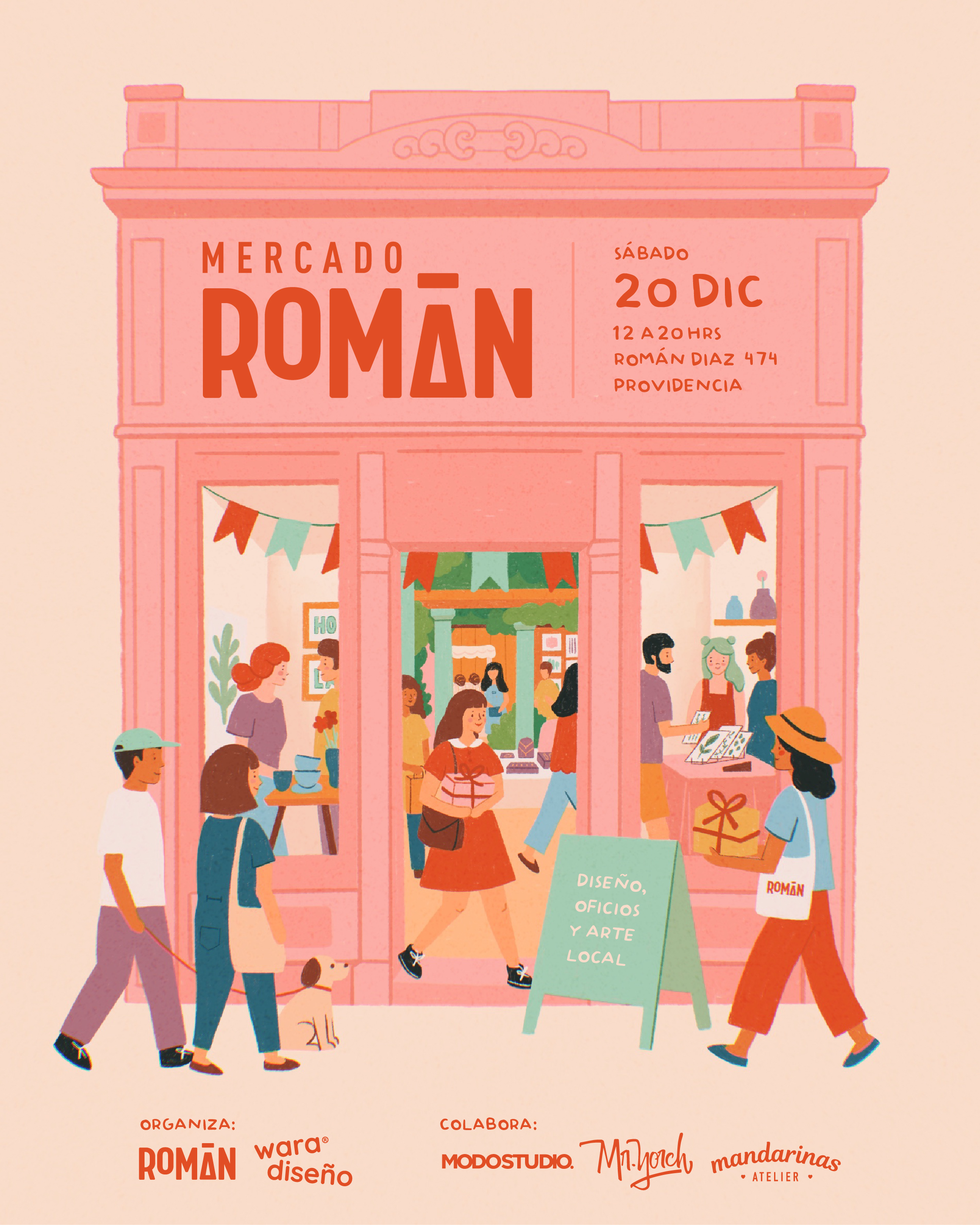 Ilustración para el último Mercado Román del 2025, inspirada en la casa como un espacio vivo y de encuentro, donde creadores, el diseño independiente y los oficios conviven con la vida cotidiana: un lugar para compartir, descubrir y llevarse algo único, más que una casa, el alma del mercadito.